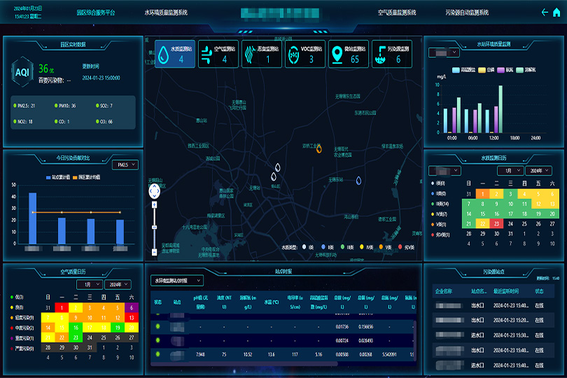 構建全方位、多層次、立體化生態安全監測網絡,集水環境污染溯源預警預測、大氣環境污染溯源預警預測、智慧工地/港口揚塵在線監控、